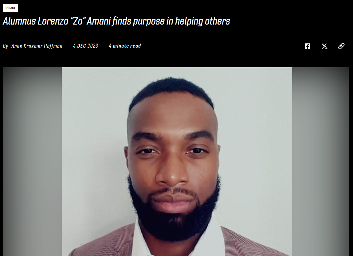 Zo was recently recognized for his service mindset by Virginia Tech - "Amani's experience as an athlete equipped him with skills that transcended sports."